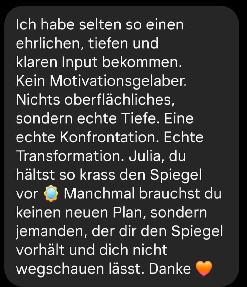 Kein Skript. Kein Filter. Keine Verkaufsmasche.