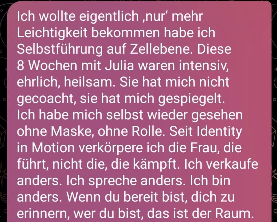 Identity in Motion war nicht einfach ein Mentoring, es war der Moment, in dem sie sich selbst wieder gespürt haben.